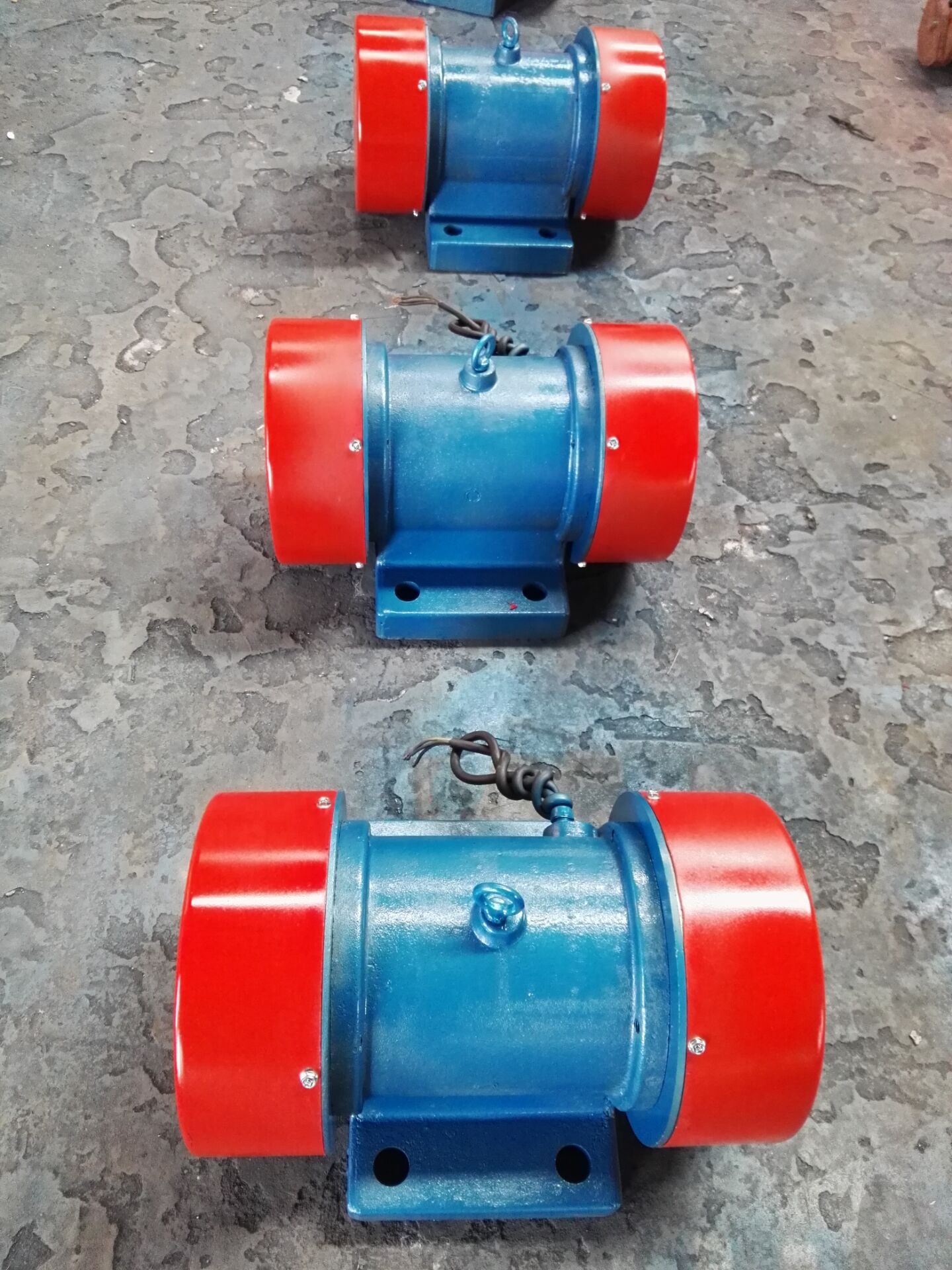 TZD振动电机安装和使用: TZD振动电机为三相380V 50HZ异步电动机,封闭自冷式、可做水平、倾斜安装。TZD振动电机在连续工作时,周围空气中不得含有腐蚀性及爆炸性气体,环境温度不得超过40度。将振动电机安装在振动机械上时,振动电机的底脚螺栓必须紧固,每个螺母下必须加平、弹垫圈,振动电机运转初期,由于螺栓、螺母、底座平面间的磨合,会降低紧固力,出现小的松动,故运转初期应将电机的底脚螺栓多次拧紧,开始时每天紧固一次,两周后每周检查紧固一次。 TZD振动电机运输过程中或长期闲置时,可能会受潮,使用前应用500V兆欧表检查绕组的绝缘电阻值,应大于0.5MΩ方能使用,如受潮,需做烘干处理。 TZDC系列振动电机的轴承应定期补充油脂(2#工业锂基脂),一般4-6个月补油一次。待振动电机处于非工作状态用油枪在油嘴处注入。 TZD振动电机一般运行4-6个月小检修一次,一年大检修一次。小检修时清除机体积尘,检查线圈的绝缘电阻、接线是否牢固,及时清除隐患。大检修时应拆开电机,用压缩空气将内外吹净,检查轴承的磨损,更换新的润滑脂。