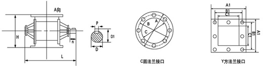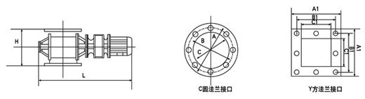 旋转下料阀的上、下法兰口基本是方形或圆形,也可以由用户选定,普通型一般适用于无风力压力。