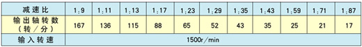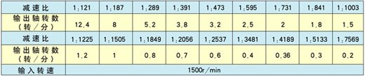 单级减速比和输出轴转速: